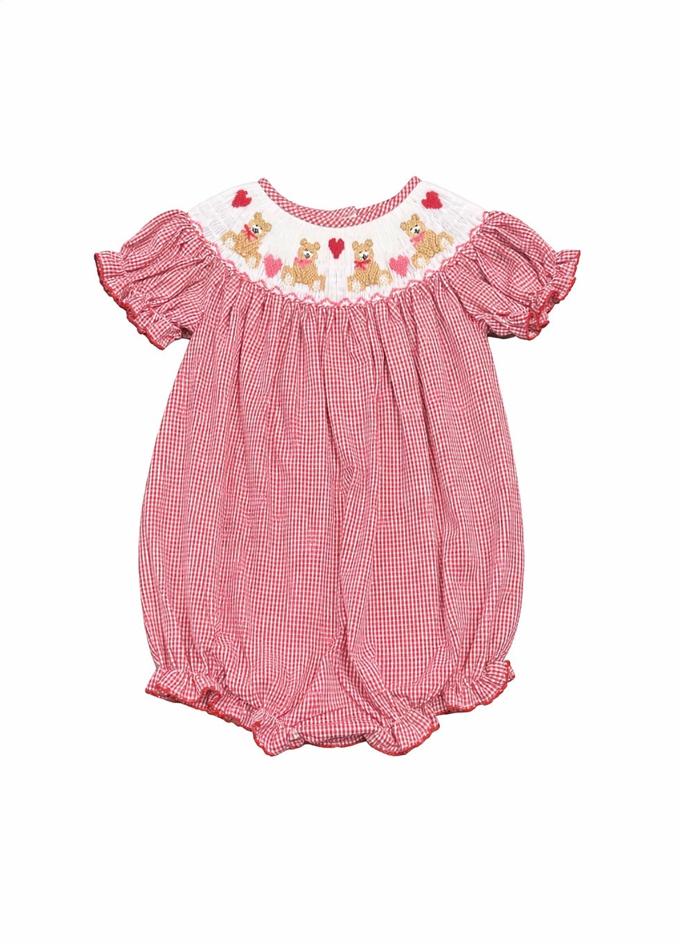 LuLu Bebe Baby Girls Gingham Teddy Bear Hearts Bubble