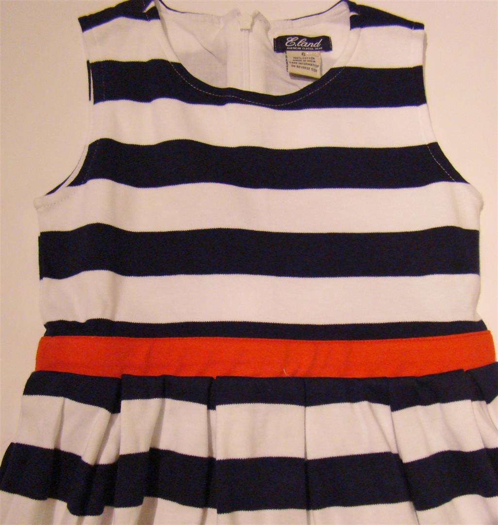 > E-Land Kids Navy Stripe Knit Sleeveless Dress with Red Detail 10_